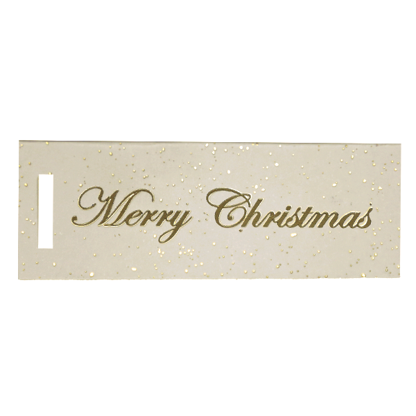 Ogni cartellino misura 55x90 mm, dimensione ideale per essere applicato su confezioni di varie dimensioni. La scritta "Merry Christmas" in oro aggiunge un elemento di classe senza risultare eccessiva, mentre il materiale robusto garantisce resistenza durante la manipolazione e il trasporto.